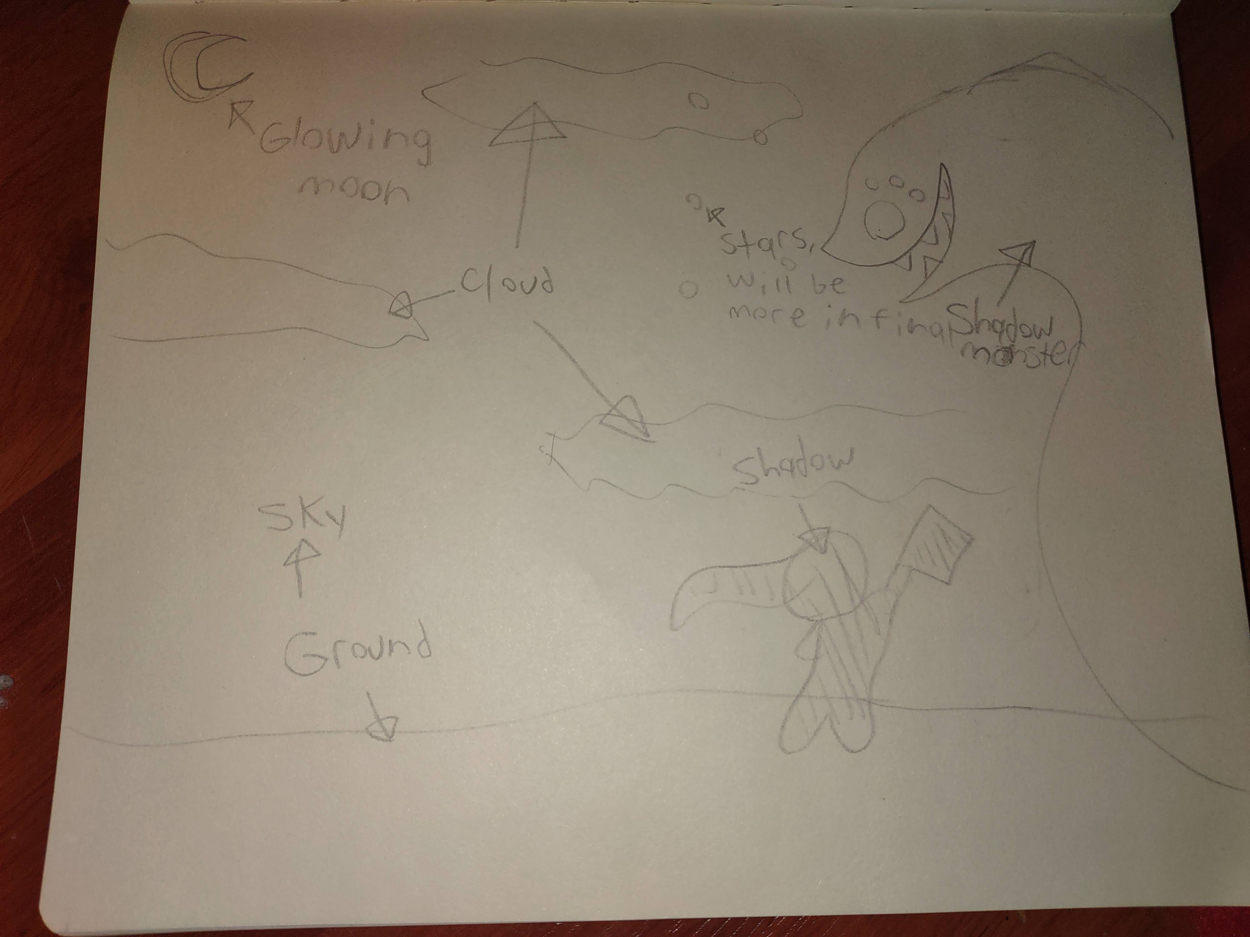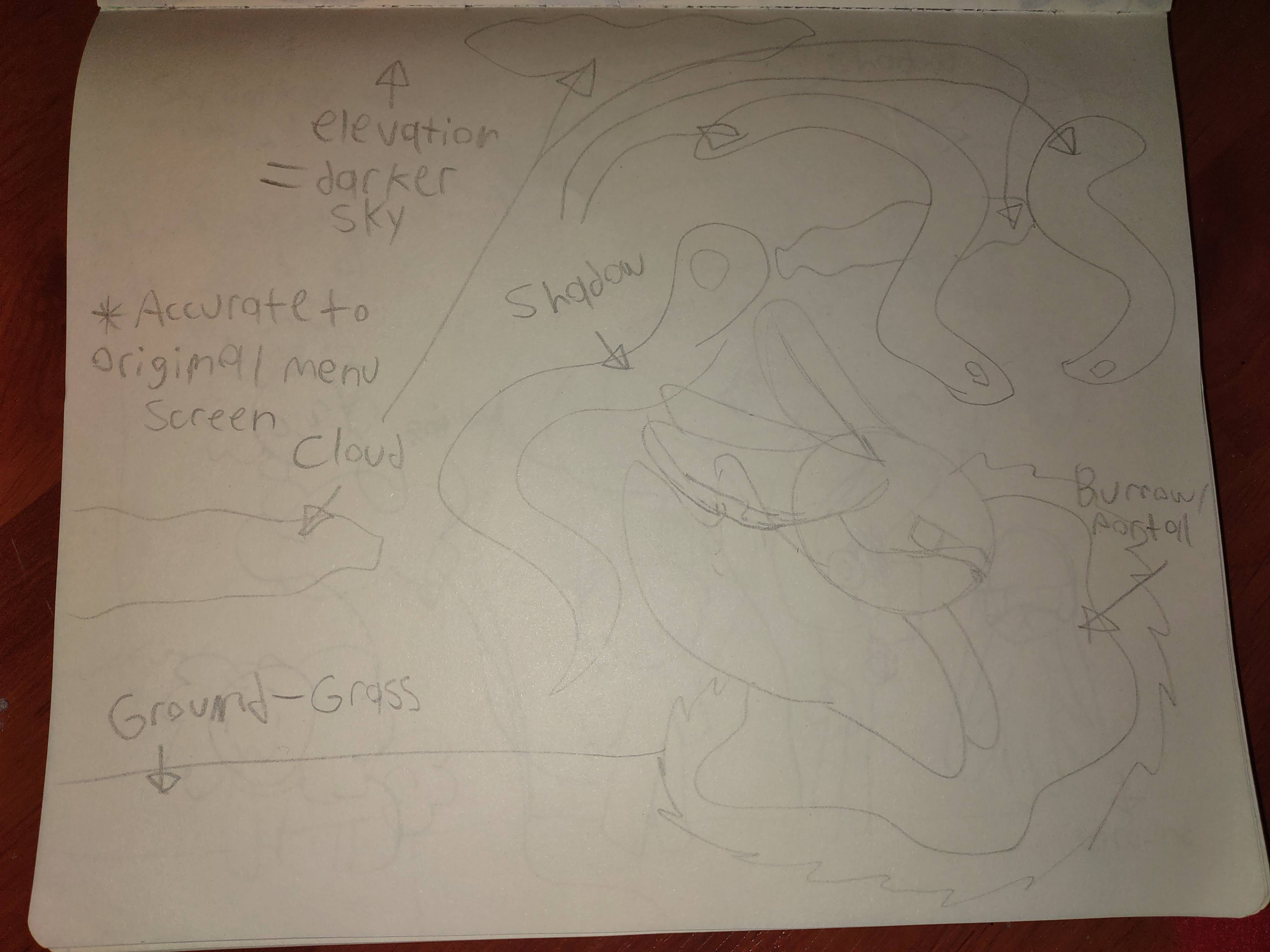 The first design [above] was intended to be a remake of the same title screen: Crimson and a burrow. The main differences would be the fact it's hand-drawn [with edits], and the addition of the shadows near the portal, as well as Crimson's pose being different.